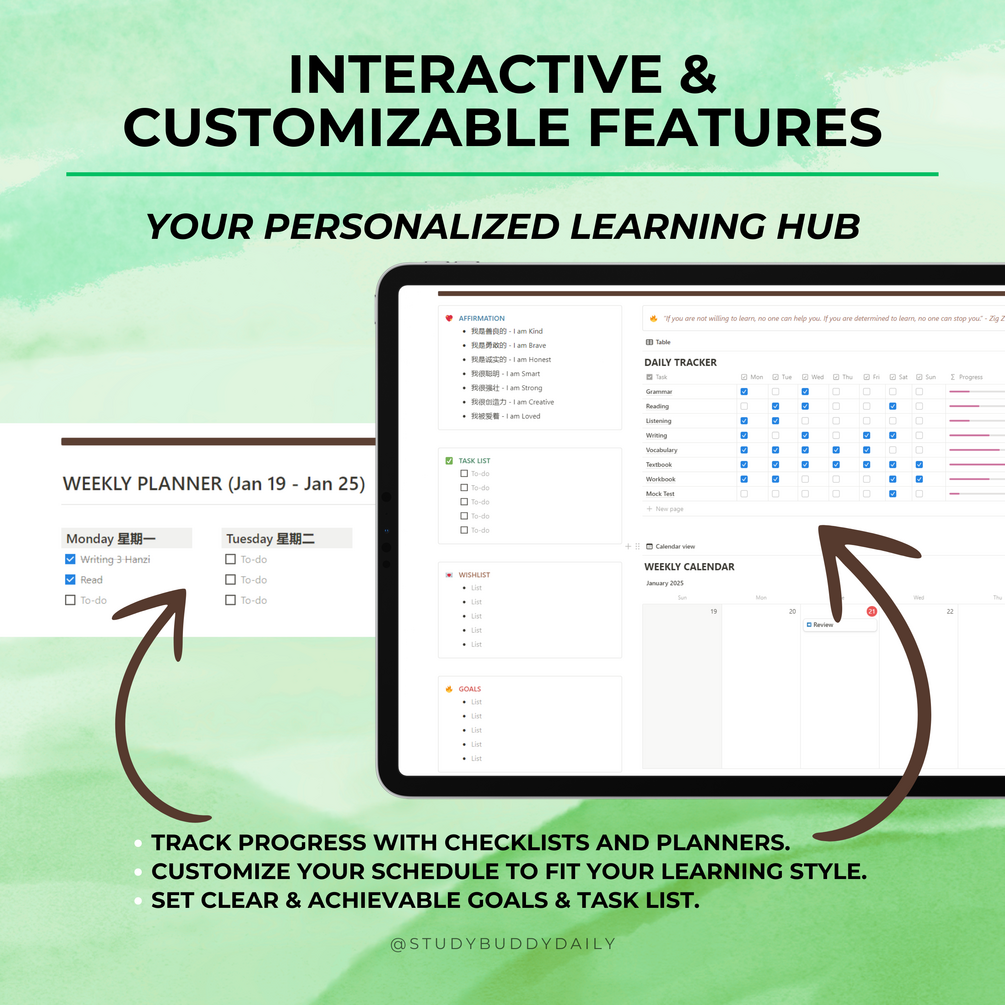 Master Mandarin Step-by-Step โ HSK 1-2 Learning Planner in Notion by @StudyBuddyDaily