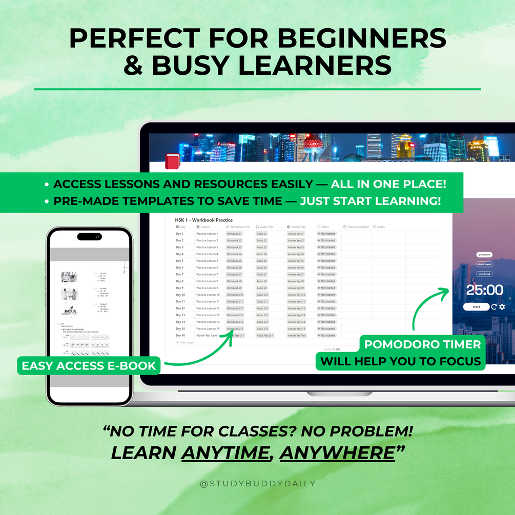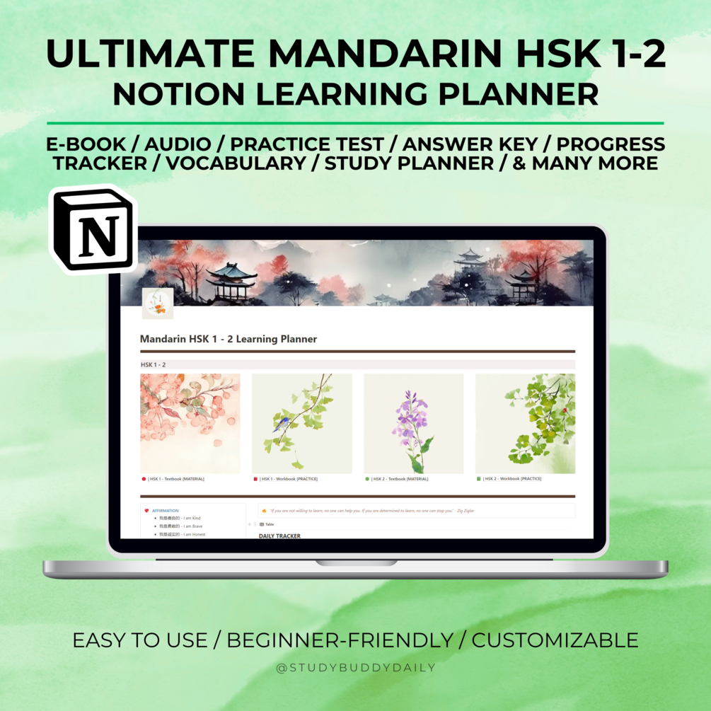 Ultimate Mandarin HSK 1-2 - Notion Learning Planner / E-book / Audio / Practice Test / Progress Tracker / Study Planner / Instant Download